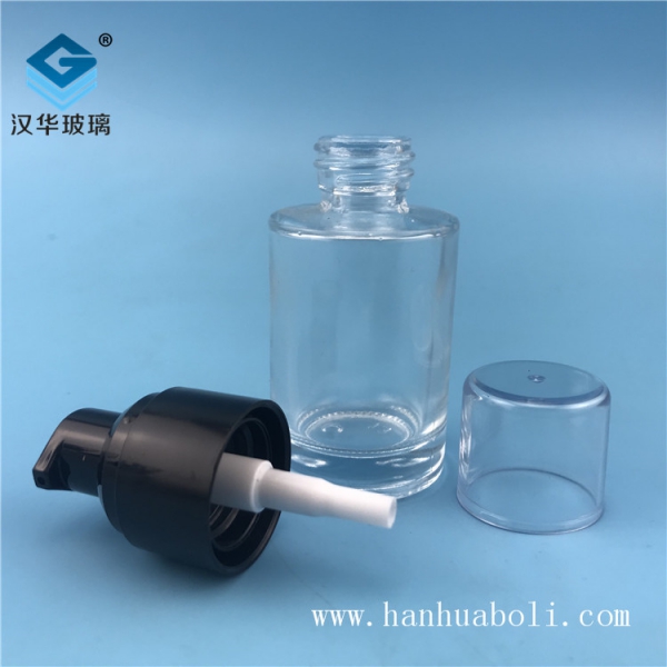 当前位置:首页>产品中心>乳液玻璃瓶>30ml塑料黑盖透明乳液玻璃瓶