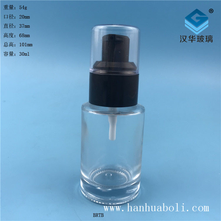 当前位置:首页>产品中心>乳液玻璃瓶>30ml塑料黑盖透明乳液玻璃瓶
